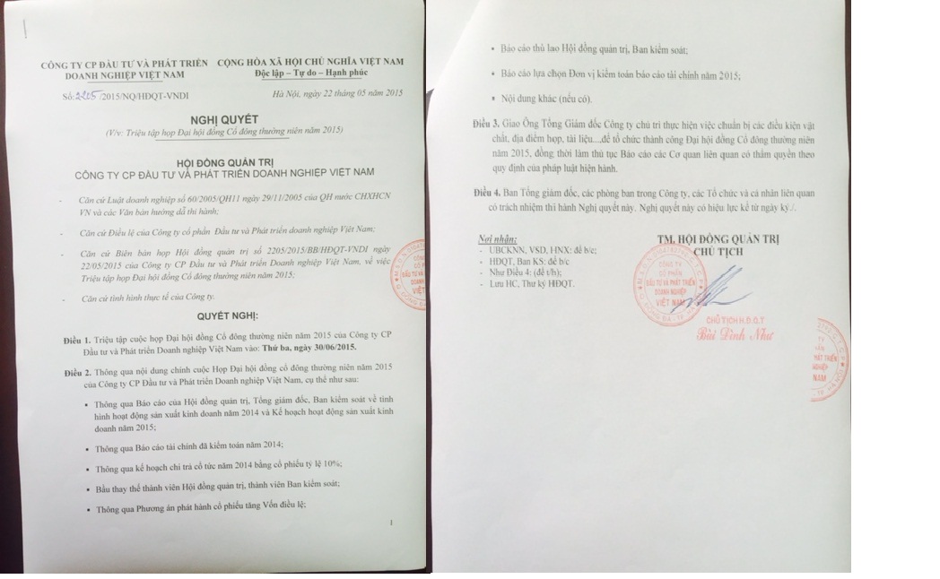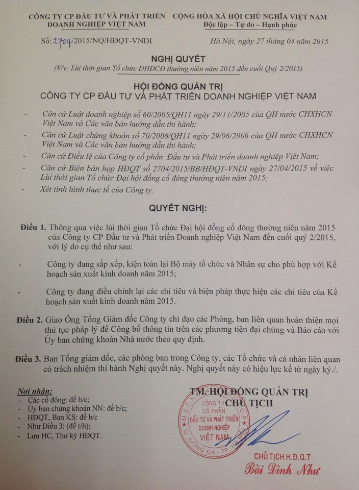 NGHỊ QUYẾT ĐHCĐ CÔNG TY CP ĐẦU TƯ VÀ PHÁT TRIỂN DOANH NGHIỆP VIỆT NAM
