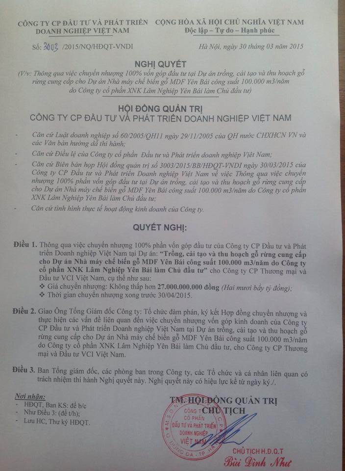 7.6. Biên Bản số 2605/2016/BB - HĐQT - VNDI và Nghị Quyết Số 2605/2016/NQ - HĐQT - VNDI xem tại đây