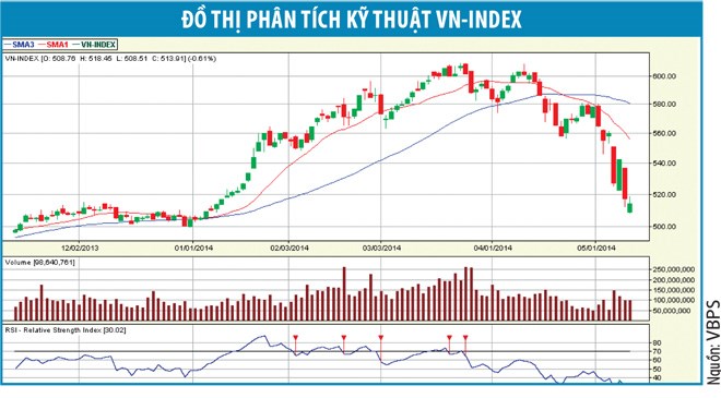 Trước đó, VN-Index đã tăng điểm hơn 20%, HNX-Index tăng hơn 30% trong những tháng đầu năm. Mức tăng trên là khá mạnh so với tốc độ hồi phục của nền kinh tế và sự điều chỉnh diễn ra là tất yếu. Tuy vậy, sự kiện Biển Đông đã khiến quá trình điều chỉnh diễn ra rất nhanh và mạnh. Sự quan ngại của NĐT dường như đã khiến TTCK giảm quá đà so với bản chất kinh tế vốn có. Hiện tại, VN-Index đang giảm gần về vùng 500 điểm, xóa bỏ gần như toàn bộ thành quả tăng điểm của quý I/2014.